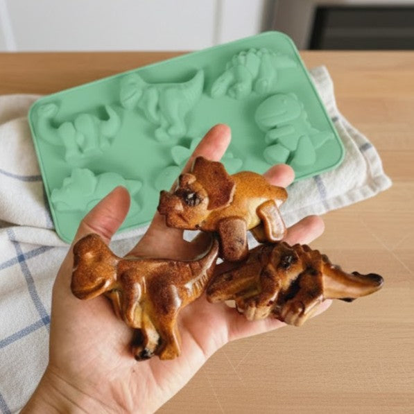 Objavte radosť z pečenia s deťmi pomocou tejto silikónovej formy na pečenie dinosaurov! Forma je ideálna pre prípravu zdravých domácich pochúťok, ktoré potešia každého malého milovníka dinosaurov. Pečenie v tvare dinosaurov, ako sú T-Rex, Stegosaurus či Triceratops, prináša do kuchyne zábavu a kreatívne možnosti. S touto formou môžete ľahko pripraviť bezlepkové, nízkokalorické alebo vegánske dobroty, ktoré budú nielen krásne vyzerať, ale aj skvele chutiť. Vaše deti ich budú milovať. Doprajte si spoločné chvíle v kuchyni a zdravé pečenie plné zábavy s touto formou na pečenie dinosaurov.